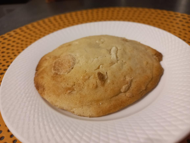 Chocolat blanc fondu dans le biscuit, pépites de chocolat blanc, cœur de pâte à tartiner au chocolat blanc